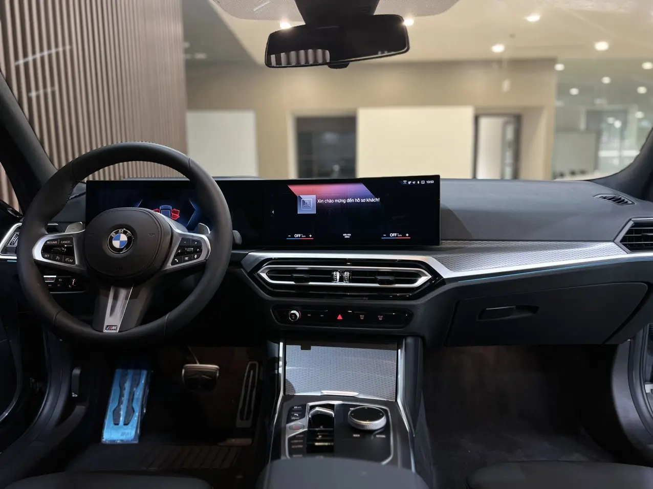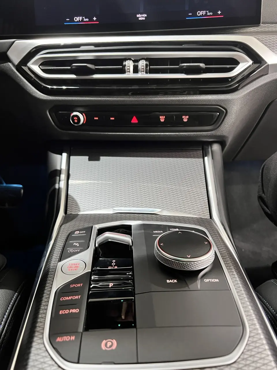 Một lần nữa, triết lý bất đối xứng trong thiết kế của xe BMW thể hiện rõ ở thiết kế màn hình iDrive 8,8 inch cố định, được bố trí nghiêng 7 độ về phía người lái khá tiện lợi. Không gian nội thất của 320i Sport M Sport LCI góc cạnh với các chi tiết có hình thang như cụm khe gió máy lạnh hay màn hình trung tâm. Đặc biệt xe còn được trang bị lẫy sang số trực tiếp trên vô-lăng đáp ứng nhu cầu của những khách hàng đang cần tìm mẫu xe thể thao.