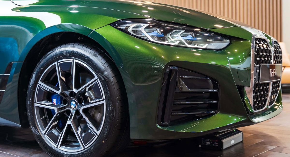 BMW 430i Gran Coupe trong bài sở hữu màu sơn Sanremo Green Metallic rất bắt mắt. Ấn tượng nhất vẫn là phần mặt ca lăng cỡ lớn, chiếm trọn chiều cao của đầu xe. Kích thước xe: 4783 x 1852 x 1442mm (DxRxC) và chiều dài trục cơ sở 2856mm.