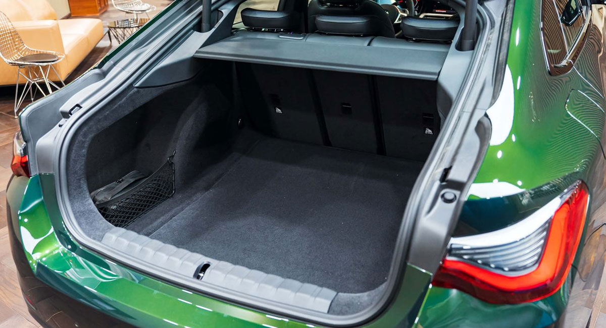 Cốp xe Gran Coupe mở cả phần kính sau, với thể tích khoang lành lí 470L.