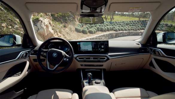 Bảng điều khiển phẳng và rất bóng bẩy tạo nên tông màu cho vẻ ngoài hiện đại của nội thất BMW i4. Bảng điều khiển trung tâm cao mang lại cảm giác thể thao và phân định khu vực riêng biệt cho người lái và hành khách phía trước.