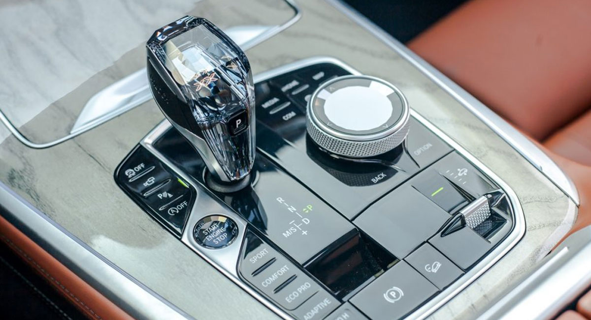 Điểm nhấn khác biệt của BMW X7 là gói tùy chọn Crafted Clarity. BMW đã hợp tác với hãng pha lê Áo Swarovski để cung cấp tùy chọn thay các chi tiết nhựa trên cần số, con xoay iDrive, nút đề máy và nút âm lượng bằng pha lê Swarovski thứ thiệt.